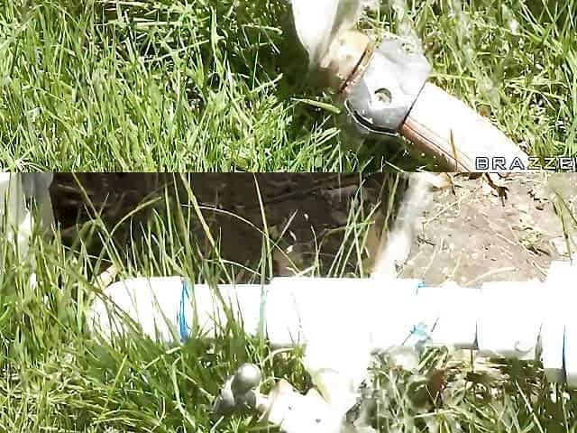 Sexy as hell brunette Helen Star impaled in the sideways pose