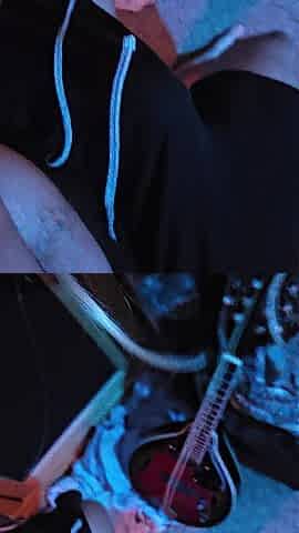 View from beneath - Built dude rubbing a Yamaha C80 guitar on his big ramrod - Hot Number One