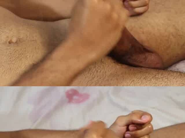 Penis with rings stroking, view from above + spunk flow, 1st movie scene from a noobie