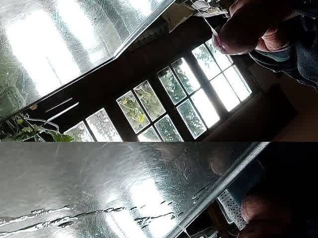 Banging a sex-toy infront of the mirror at a hotel room.