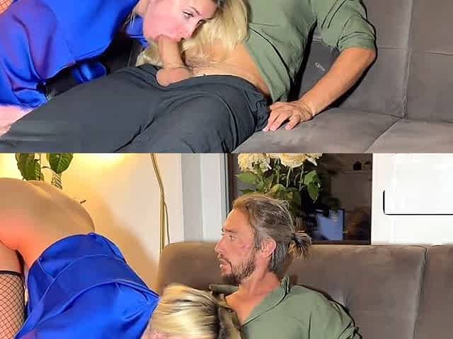 Hot Blonde MILF Gets Her Tight Pussy Fucked Hard On White Sofa