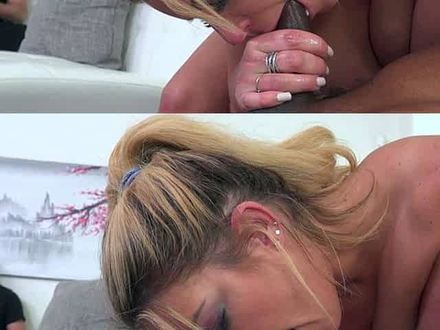 Interracial blowjob for brunette sucking big black cock
