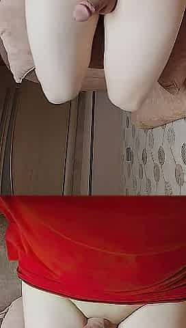 Femboy TrixiWild plays in satin underware and gives self-facial