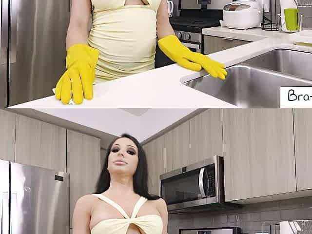 Gorgeous busty brunette Angela White jumps on a huge loaded dick