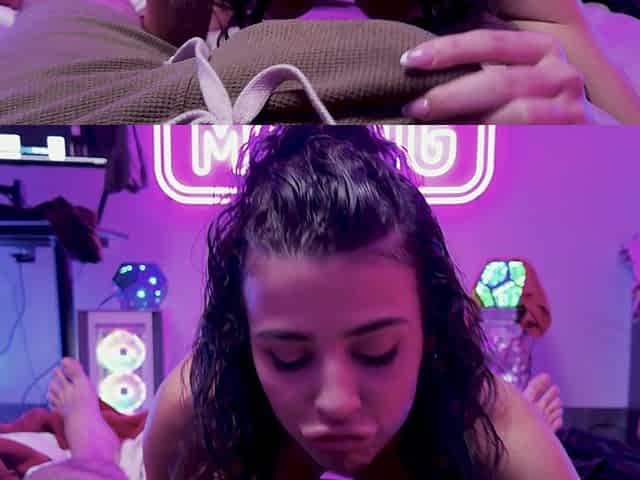 Brunette gilr really loves his big dick. Sucking on it deep for me