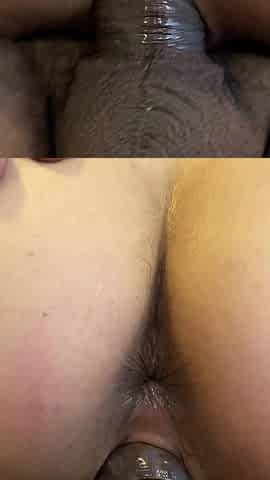 Girl using a sextoy on her butt previous to screwing with a ebony man