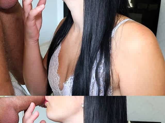 Brunette beauty devours with intense, passionate oral hunger