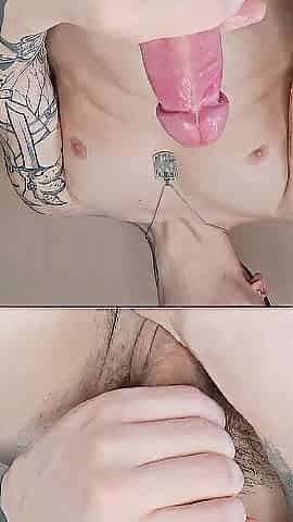 Sissy useless clitty locked in chastity cage and use anal opening to get climax, sissygasm, sissyfication.
