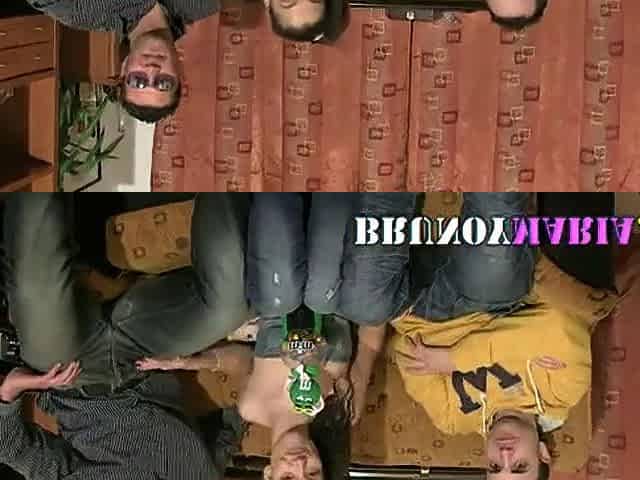 Small brunette hair Russian floozy anal screwed by 2 perv males