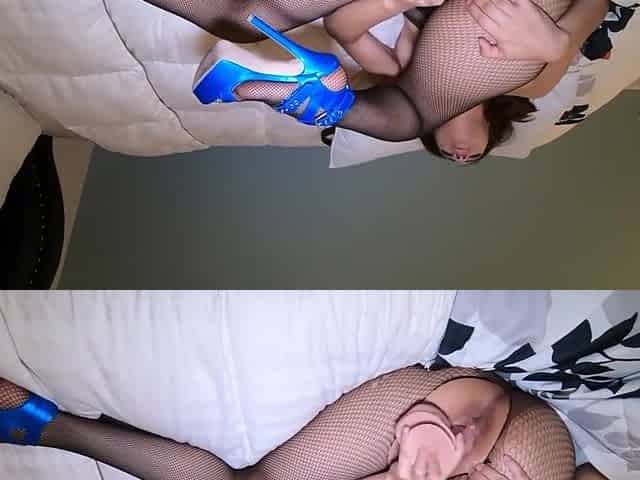 Breasty angel masturbates with toes and bangs herself in all holes