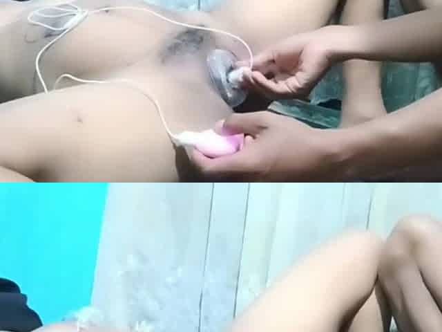 My constricted snatch is being fucked by a sex machine into an explosive squirt.