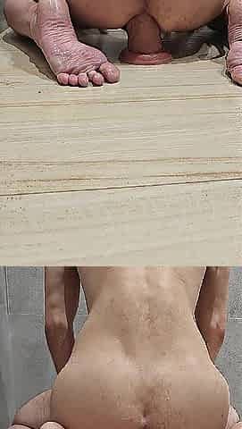 Solo anal giant sex tool ride in shower