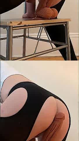 Big-ass schoolgirl uses a big dildo for solo masturbation on