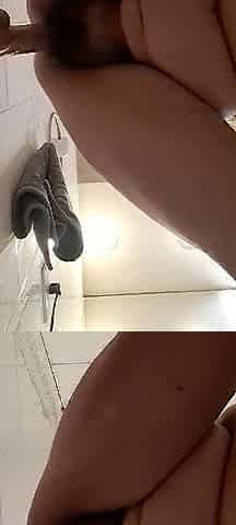 Big Dildo Fills Tight Pussy - Solo Female Orgasm in Bathroom