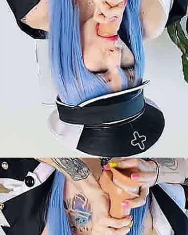 Hot long legged nun rides a big dildo with her ass