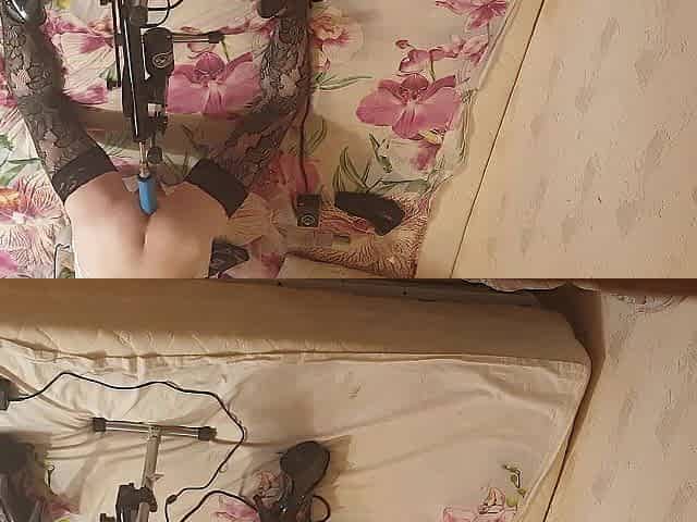 Cunt Stretching with Giant Sextoy on Screw Machine