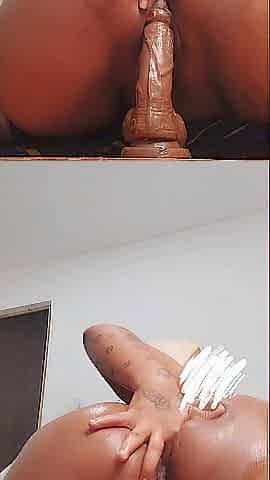 African Solo Lesbian With A Fine Round Ass Fingering Pussy And Using A Big Dildo To Pleasure Her Self To Cum