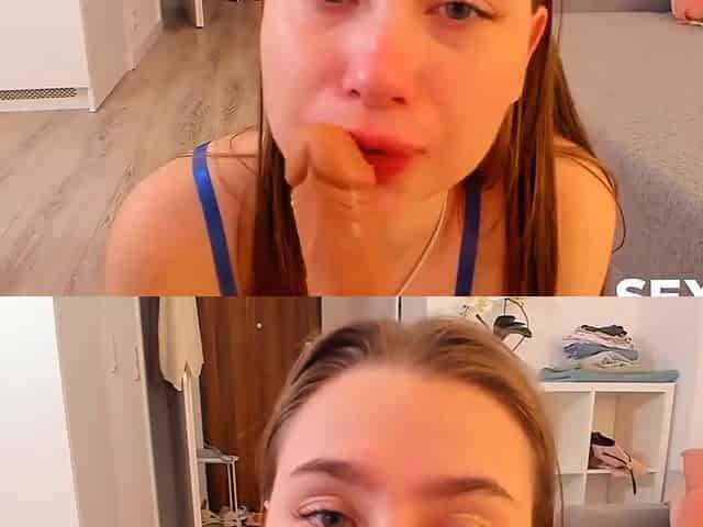 Horny Teen Sucks A Huge Dildo Then Fucks Her Cunt With It - CumDateMe