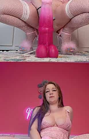 Teen Rides Huge Dildo In Both Holes