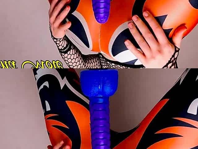 In Spandex Leggings Shakes Her Ass And Rides A Big Ribbed Dildo