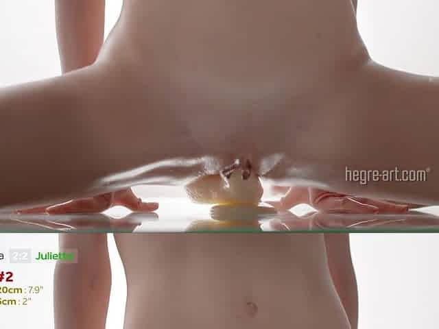 Flexible teen squats on massive dildo