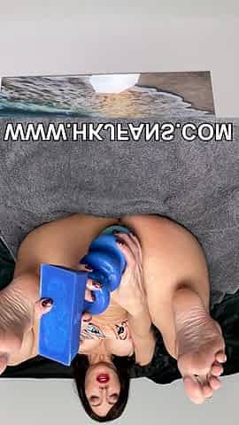 Hot redhead babe footjob to a big dildo