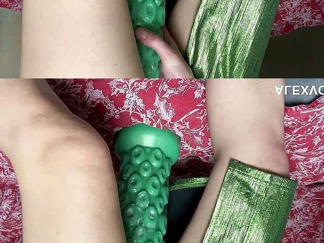 Hotkinkyjo in sexy green dress take in ass huge dildo from sinnovator, anal fisting, gape & prolapse