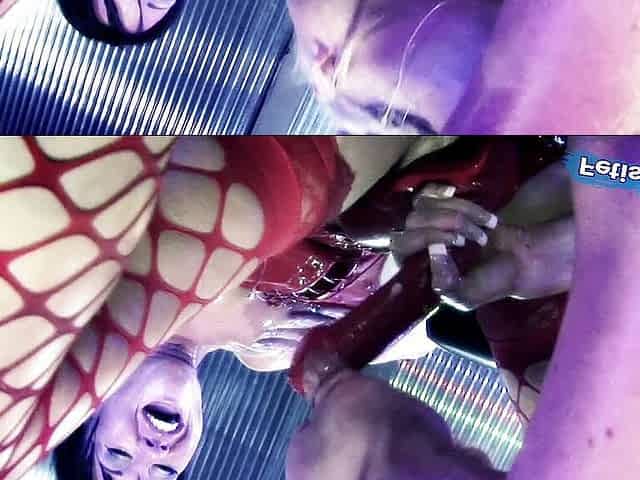 Blue haired in stockings fucks her stepmom's huge dildo and gets orgasm