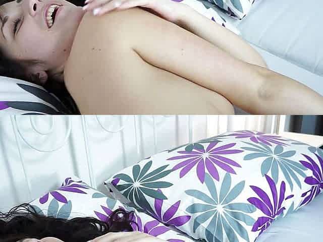 Young brunette big dildo masturbation & handjob