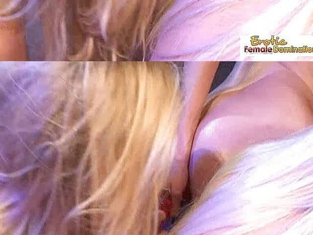 Sexy blonde loves big dildo in pussy in mouth and in ass