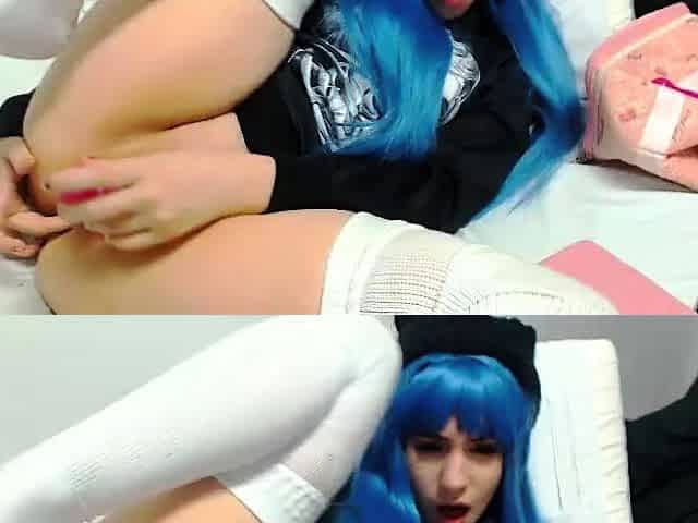 Hotkinkyjo in Blue Fishnet Take Huge Dildo From Mrhankey in Ass, Self Anal Fisting, Gape & Prolapse