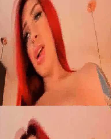 Red Haired Tattooed Woman Playing With Her Huge Dildo