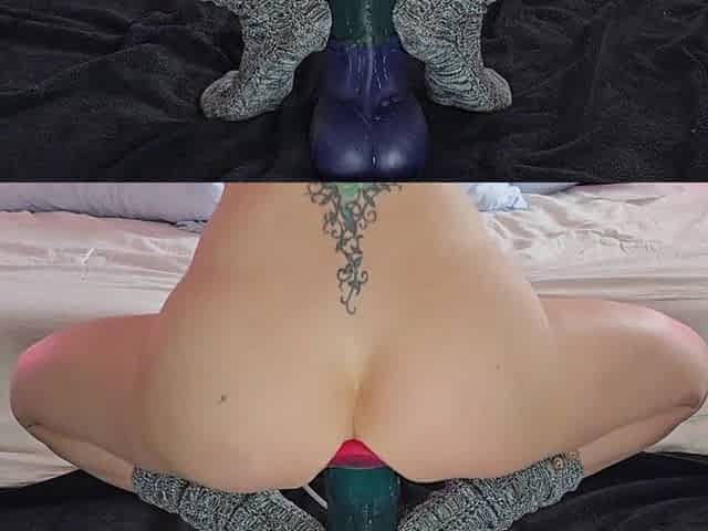 Tattooed Girls Stretches on Massive Dildo in her cute outfits