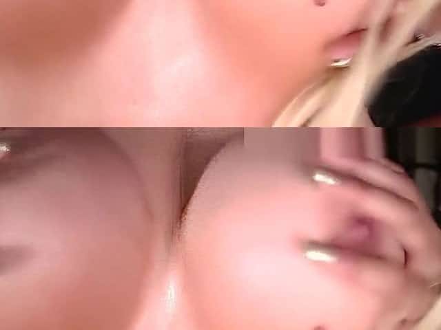 Busty Blonde Babe Inserts Big Dildo in her Pink Pussy