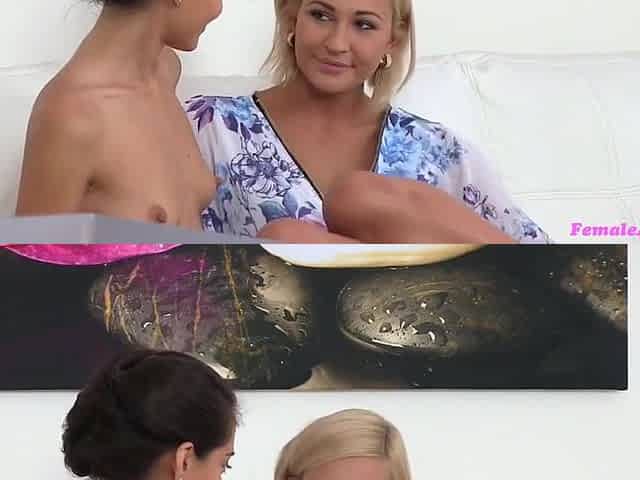 Shrima & Tracy In Slim Russian Takes Big Dildo On Agents Couch