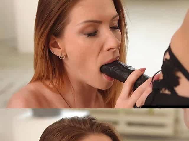 Barbara and Vlasta are enjoying fucking with a big black dildo