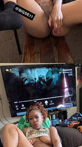 Foxyface84 has fun playing with her cootchie on the couch
