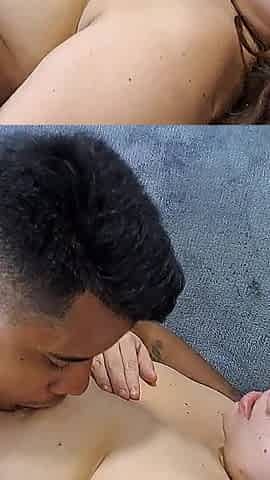 Mature in Lingerie with Young Man Fucks Her with a Load Full of Milk on All Fours. Busty Woman Sucks His Ass.