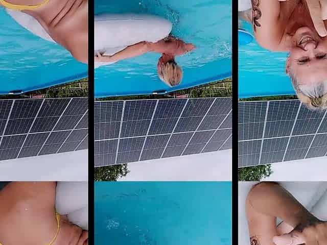 I get playful in a public pool whilst the householder is looking on me in the cameras