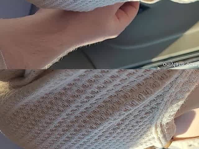 Stepsis with Sensitive Large Breasts in Sweater Teasing Me in the Car