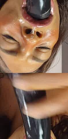Cute Ebony Fuck Mout and Fuck Ass Glass Dildo