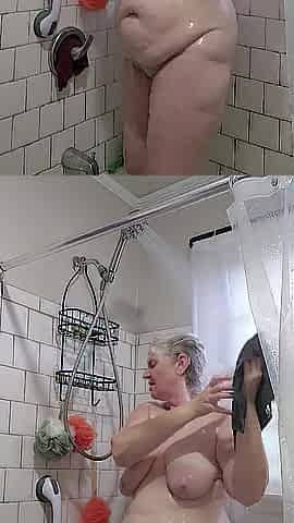 Caught My "Stepmom" Enjoying The Water Coming Out Of The Shower Head And This babe Masturbates!