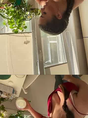 A breasty angel in a hot governess uniform fingering herself in the kitchen until climax. Homemade fetish.