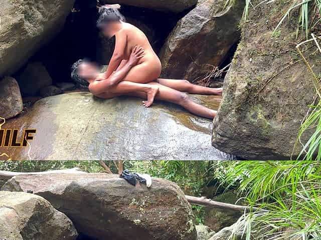 Risky Outdoor Sex _desi Big Natural Tits MILF and Boyfriend Quick Sex in the Waterfal