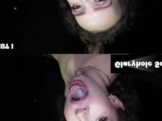 Brunette Mom Loves Sucking Cock Thru the Hole - Handjob and Cum in Mouth