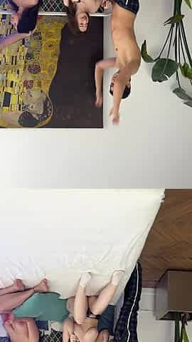 The Boy Playing the Game in the Bedroom Licks and Stands on Top of Her Girlfriend and Cum