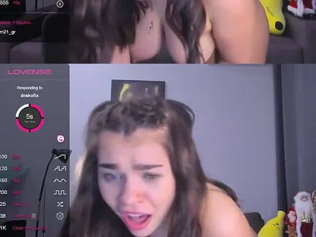 Big natural tits camgirl with vibra toy in front of webcam