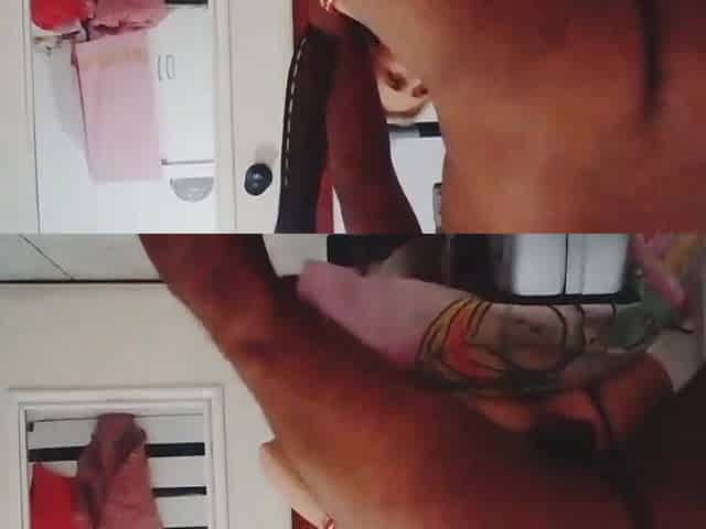 Rápida transa no quarto com gozada na bunda da morena brasileira de seios naturais.