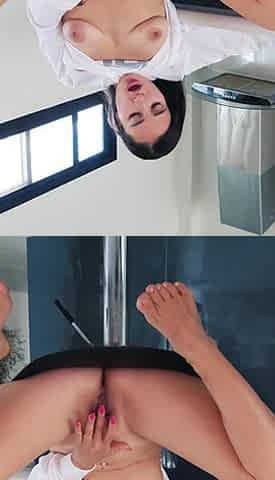 Horny Brunette Girl Real Orgasm in Kitchen