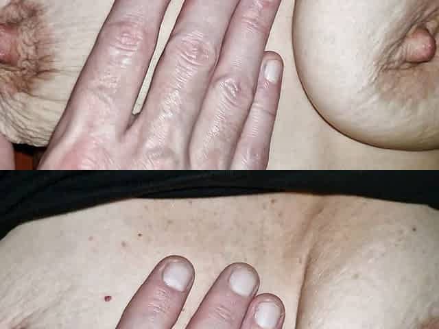 "My husband plays with my saggy tits and brutally fondles my nipples"
